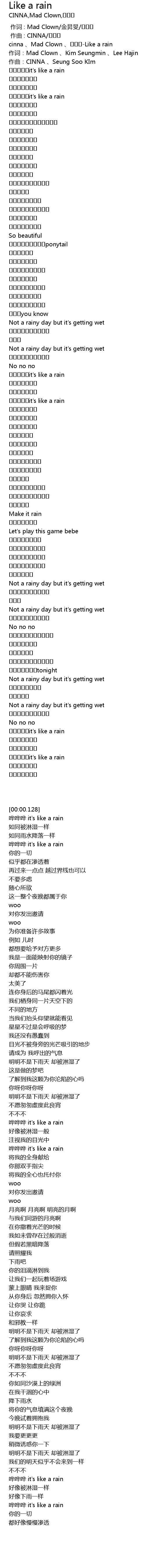 | [00:00.128] | cinna Mad Clown Like a rain |