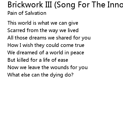 | Song | Brickwork III (Song For The Innocent T5) |