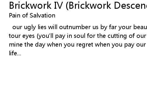 | our ugly lies will outnumber us by far your beautiful dreams you must close tour eyes (you'll pay in soul for the cutting of our loss) will your eyes be mine the day when you regret when you pay our debts to recover life to recover life... |