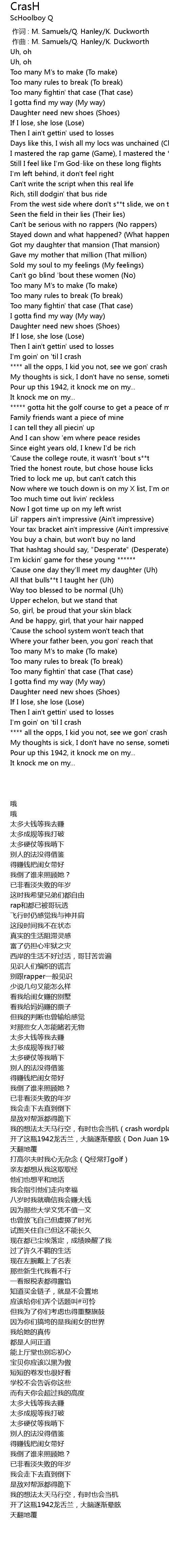 | [01:13.83] | **** all the opps, I kid you not, see we gon' crash |
