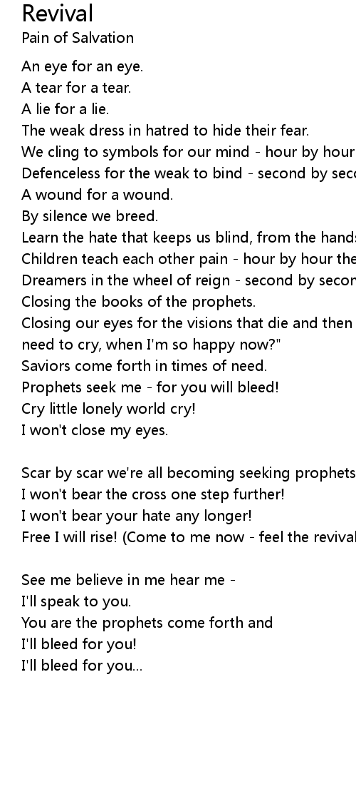 Closing our eyes for the visions that die and then we weep... "Why do I still need to cry, when I'm so happy now?" |