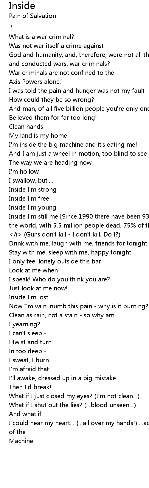Inside I'm still me [Since 1990 there have been 93 wars in 70 states all around the world, with 5.5 million people dead. 75% of these people were civilians, 1 million of them were children...]</i> (Guns don't kill - I don't kill. Do I?) |