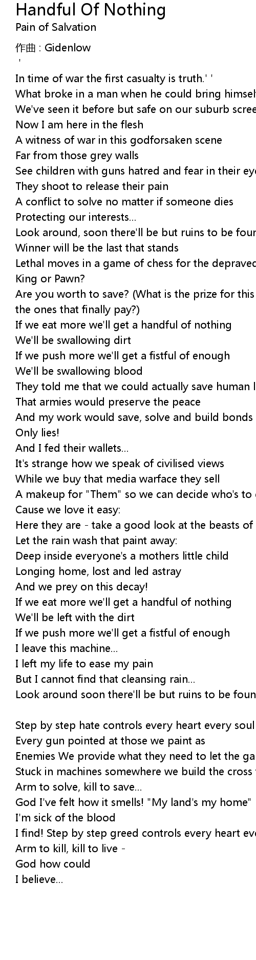 | God I've felt how it smells! "My land's my home" - we're blind! | |