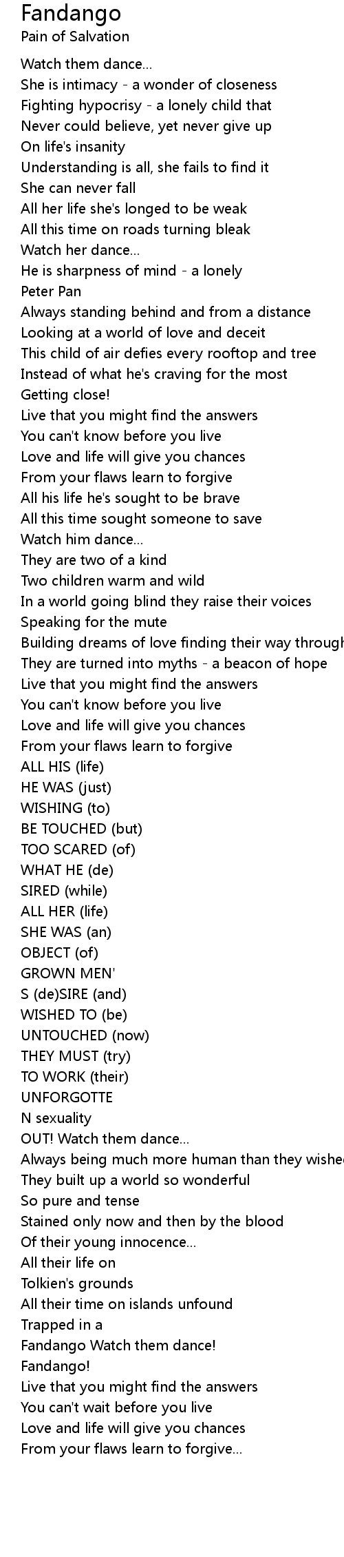 Fandango Lyrics