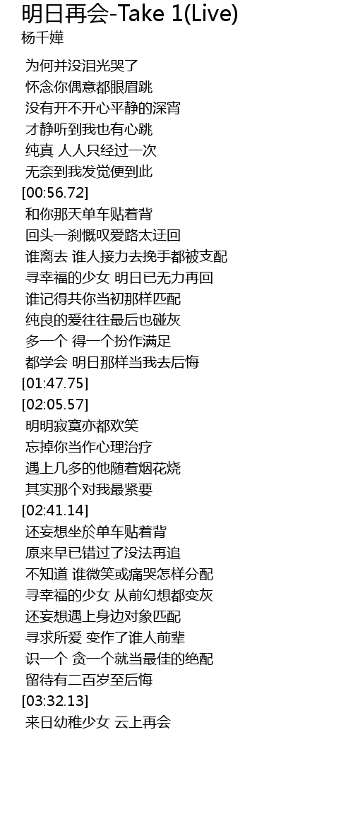 | [03:33.05] | 来日幼稚少女 云上再会 |