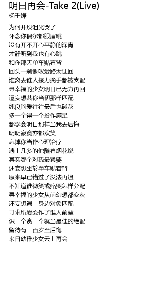 | [01:25] | dōu xué huì míng rì nà yàng dāng wǒ qù hòu huǐ |