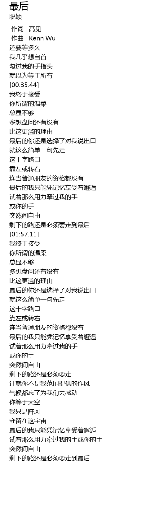 | [01:37.81] | 剩下的路还是必须要走到最后 |