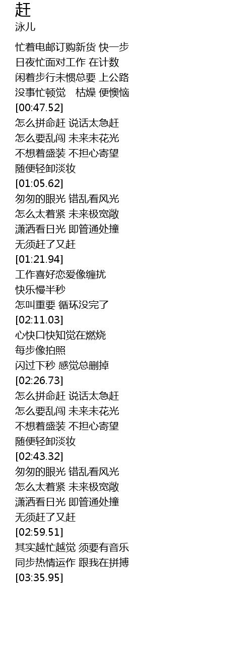 | [02:57.25] | 无须赶了又赶 |