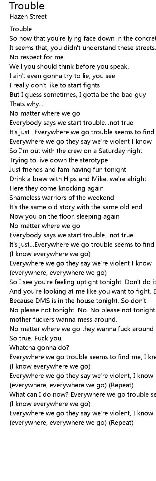 What can I do now? Everywhere we go trouble seems to find me, I know |