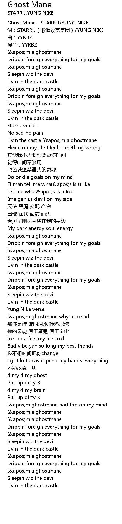 | [00:00.26] | Ghost Mane - STARR J/YUNG NIKE |
