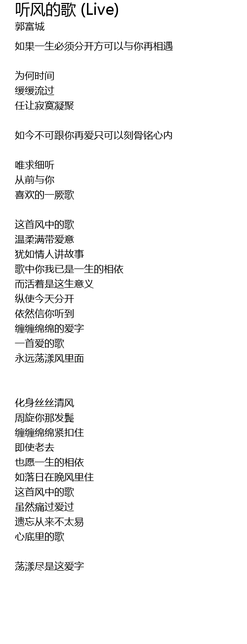 | Song | 听风的歌 (Live) |