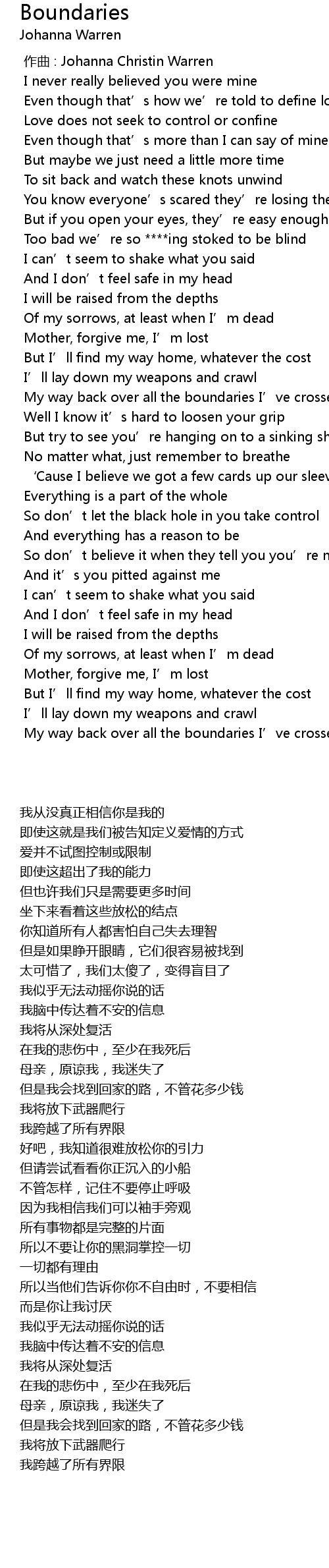 | Song | Boundaries |