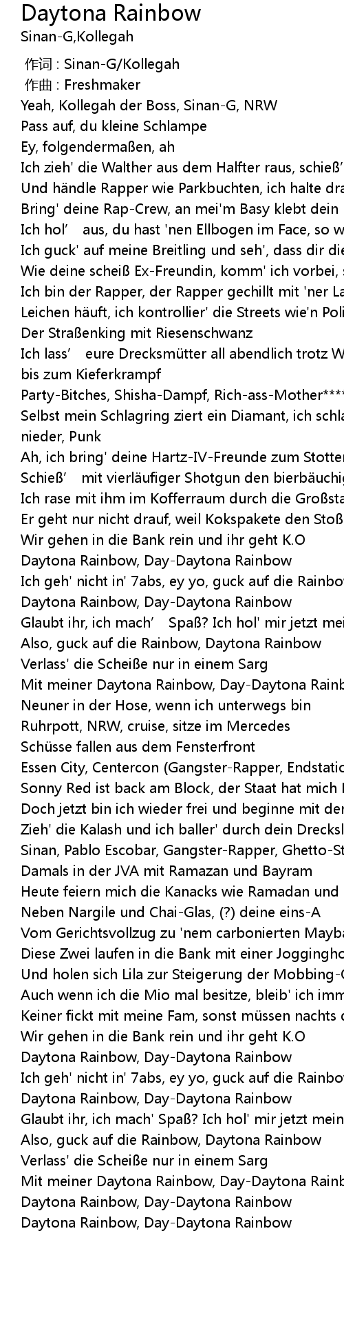 | [01:36.71] | Mit meiner Daytona Rainbow, Day-Daytona Rainbow |