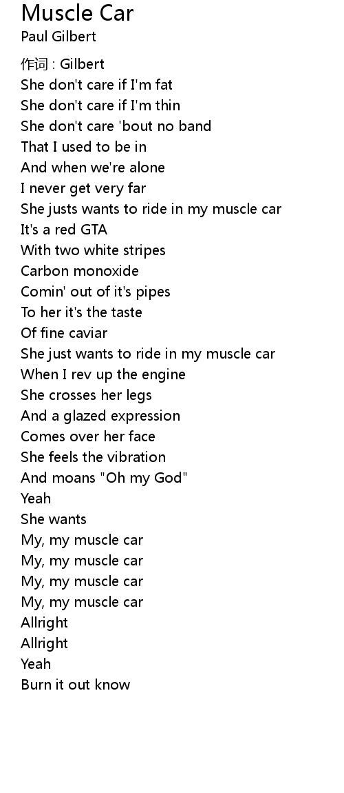 | She just wants to ride in my muscle car | |
