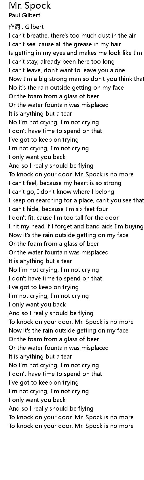 | Song | Mr. Spock |