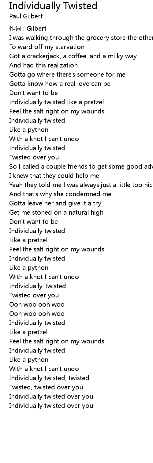 | Song | Individually Twisted |