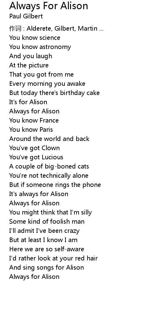 | 作词 : Alderete, Gilbert, Martin ... | |
