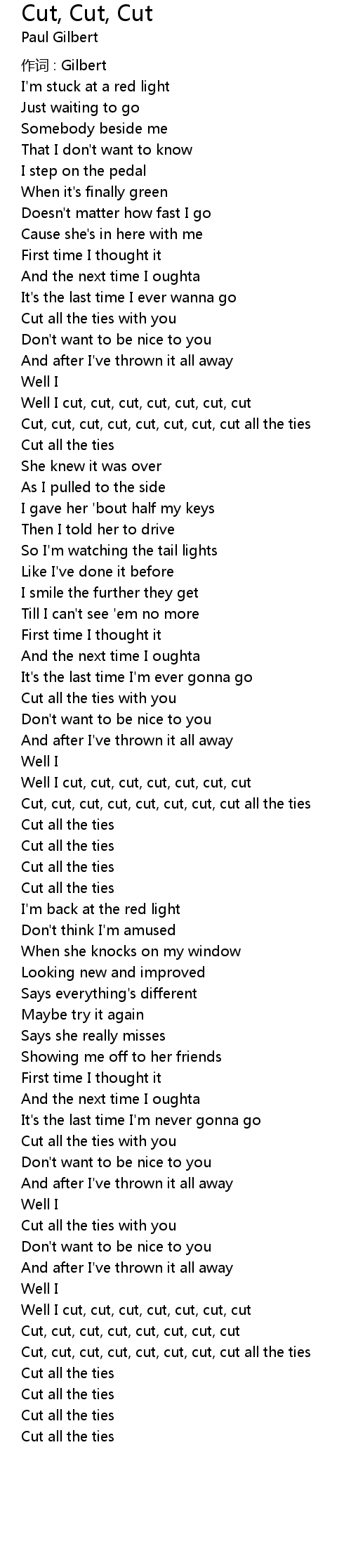 | Well I cut, cut, cut, cut, cut, cut, cut | |