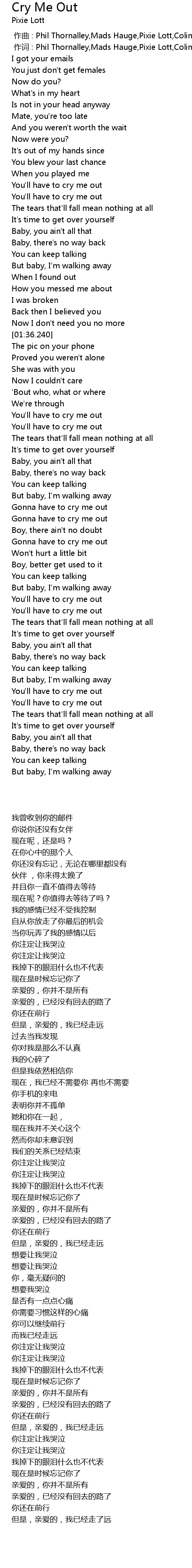 | [00:01.00] | zuò cí : Phil Thornalley, Mads Hauge, Pixie Lott, Colin Campsie |