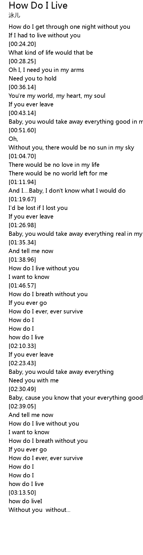 | [02:43.23] | How do I live without you |