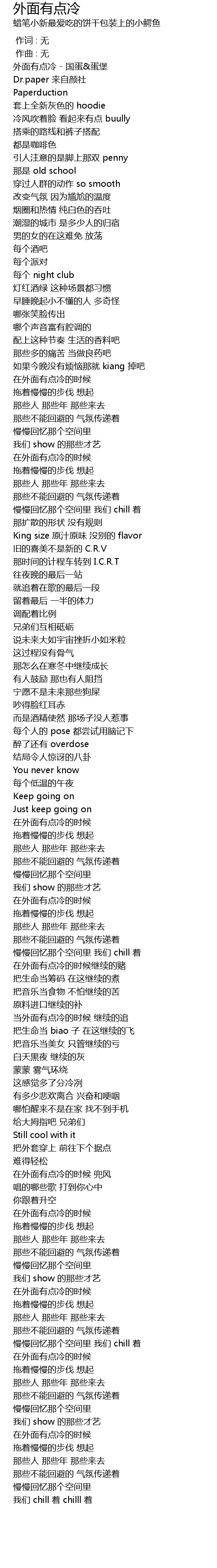| [00:08.696] | 外面有点冷 - 国蛋&蛋堡 |