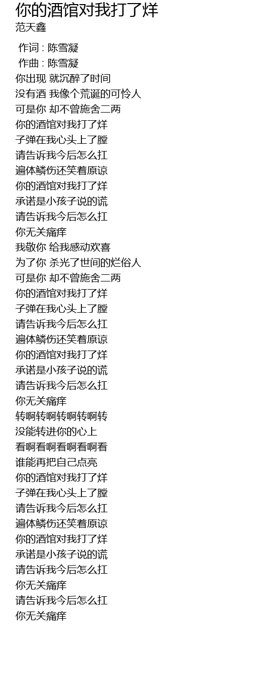 | [03:03.936] | 你的酒馆对我打了烊 |