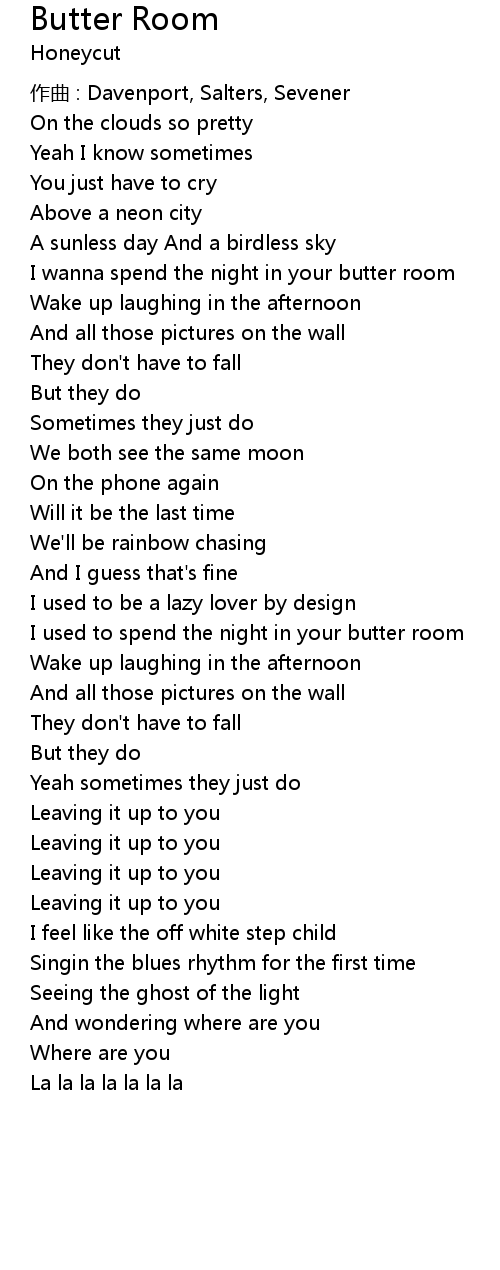 | I used to spend the night in your butter room | |
