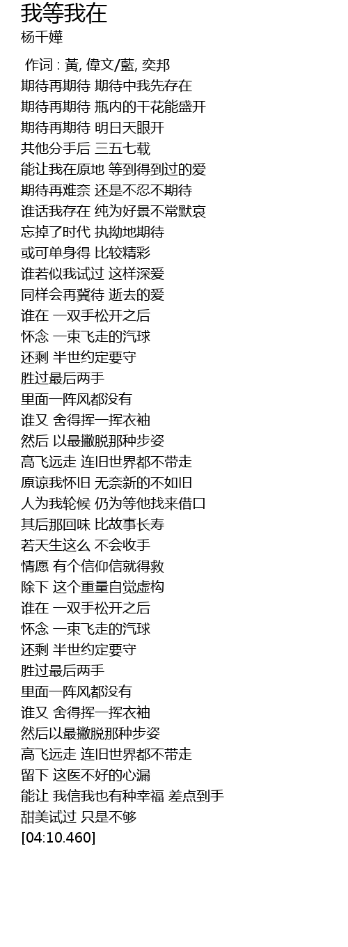 | [00:25.090] | 期待再期待 期待中我先存在 |