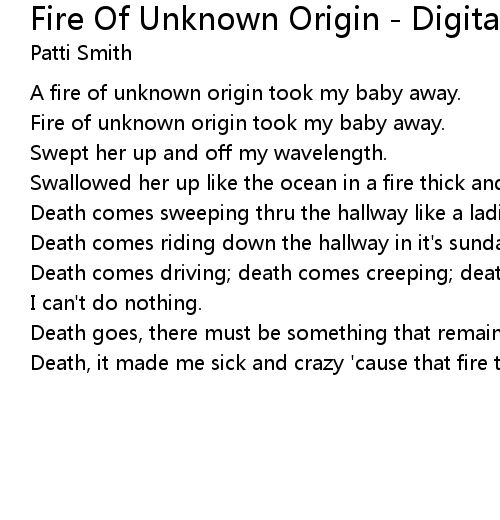 | Fire of unknown origin took my baby away. | |