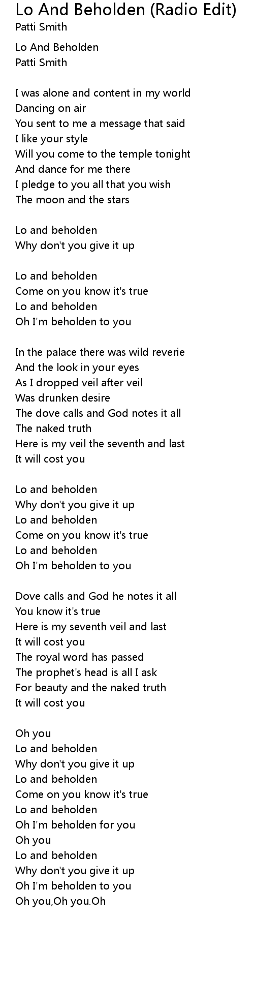 Lo And Beholden |