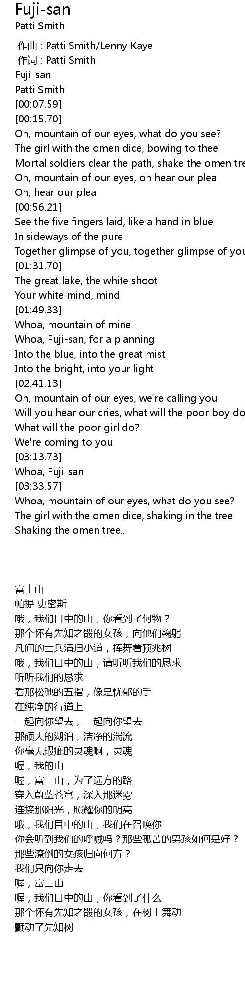 | [00:00.00] | zuò cí : Patti Smith |