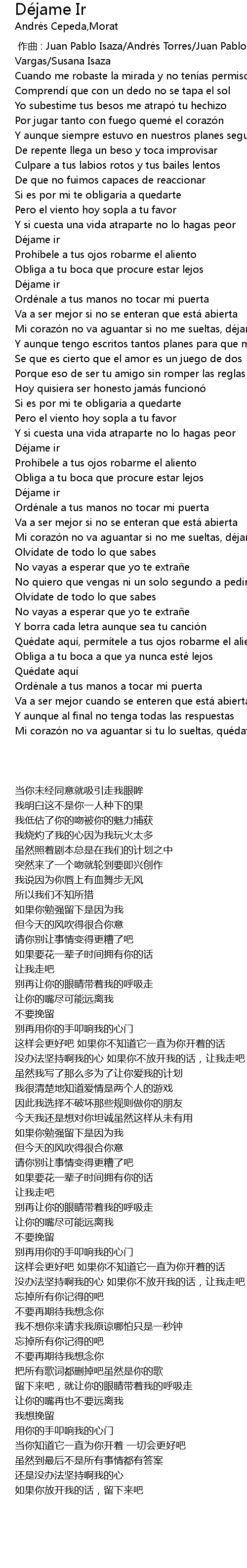 | [02:35.00] | Mi corazón no va aguantar si no me sueltas, déjame ir |