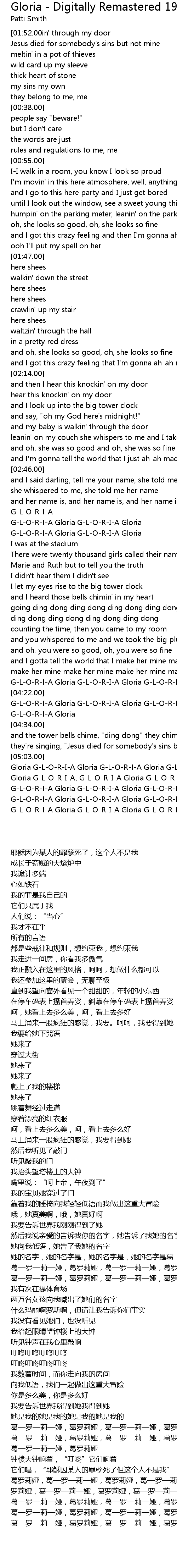 G-L-O-R-I-A Gloria G-L-O-R-I-A Gloria G-L-O-R-I-A Gloria, |