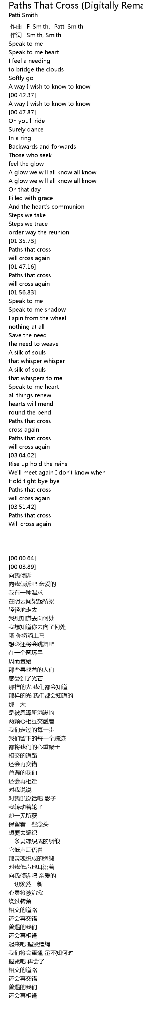 | [00:00.00] | zuò qǔ : F. Smith Patti Smith |
