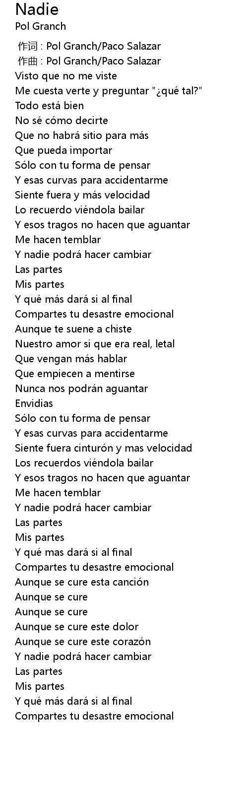 | [00:00.000] | 作词 : Pol Granch/Paco Salazar |