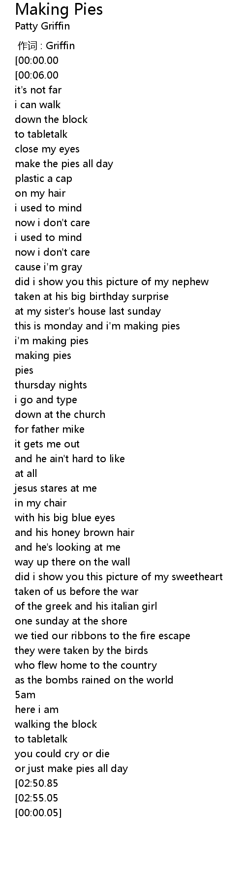 | [03:17.87][00:00.00] | patty griffin making pies |