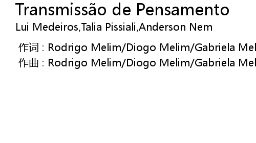 | [00:00.000] | 作词 : Rodrigo Melim/Diogo Melim/Gabriela Melim/Gabriel Cantini |