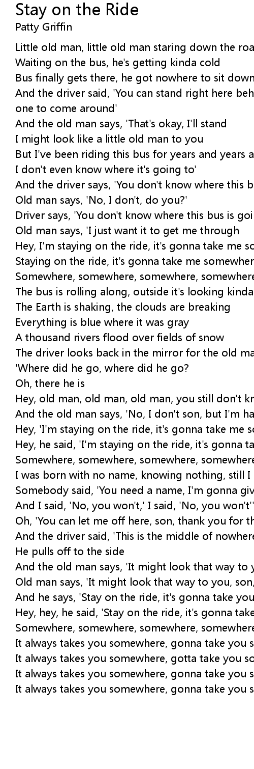 Hey, hey, he said, 'Stay on the ride, it's gonna take you somewhere |