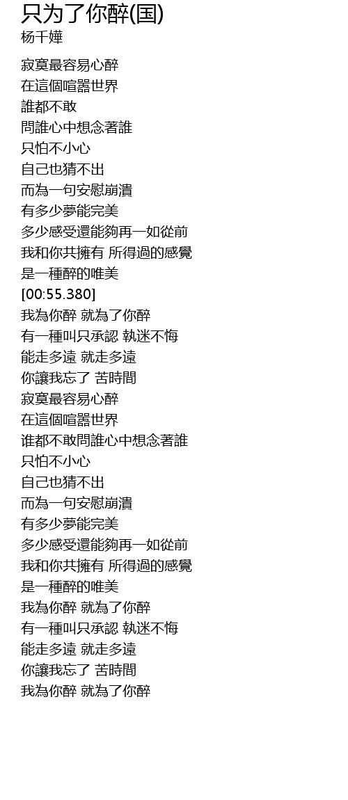 | [00:58.000] | 我為你醉 就為了你醉 |