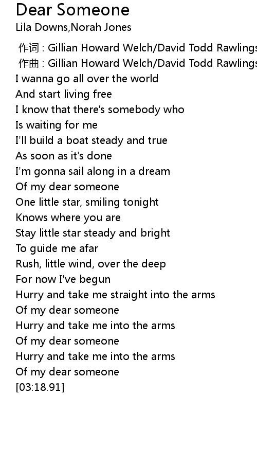 | [00:00.000] | zuo ci : Gillian Howard Welch David Todd Rawlings |