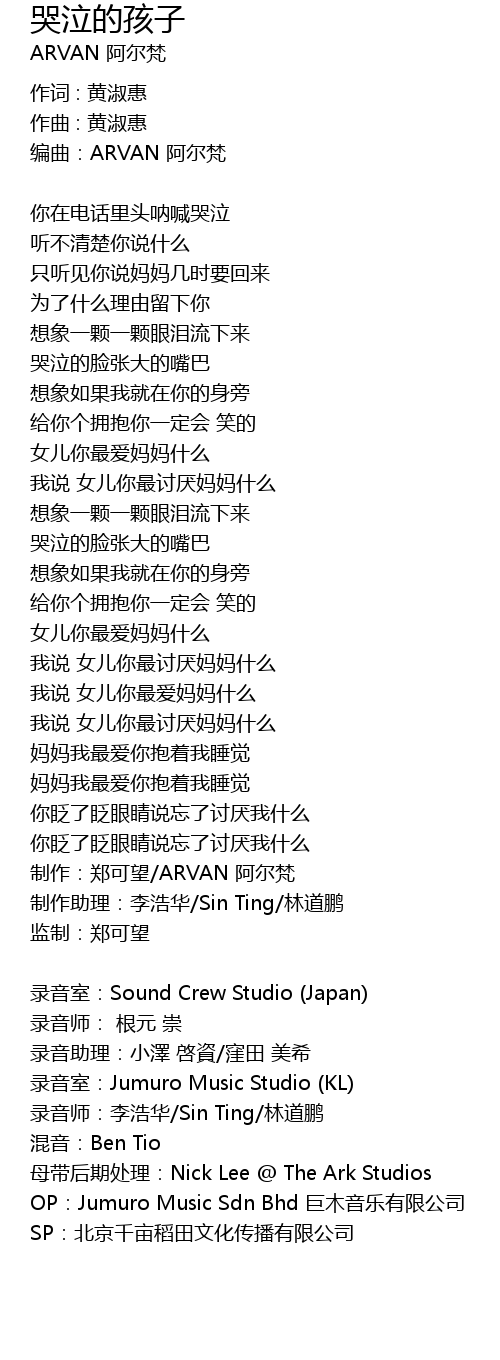 | 编曲:ARVAN 阿尔梵 | |