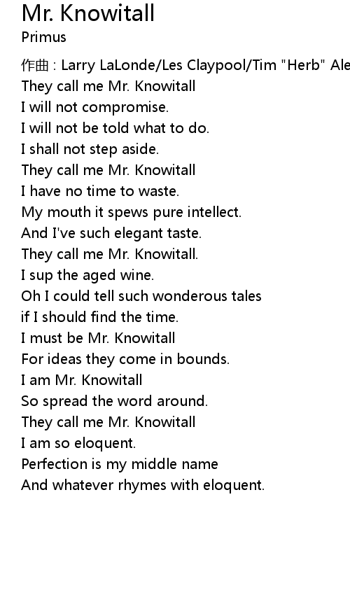 | They call me Mr. Knowitall | |