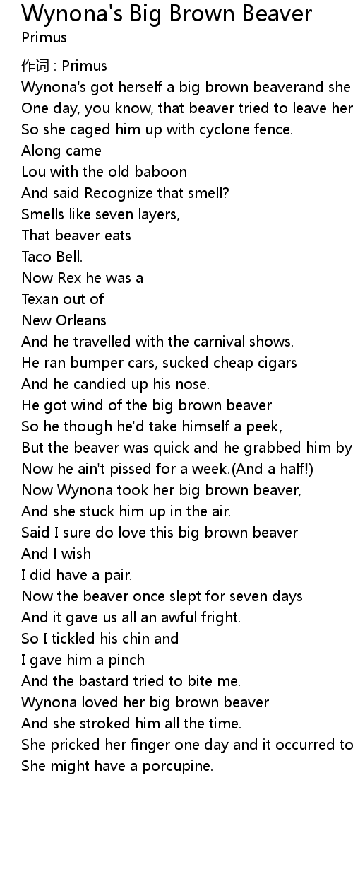 | Wynona' s got herself a big brown beaverand she shows it off to all her friends. | |