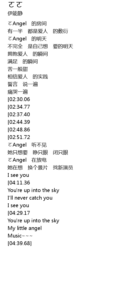 | [03:12.69][02:30.06][01:33.00] | 天使说ㄛㄛ 不小心 |