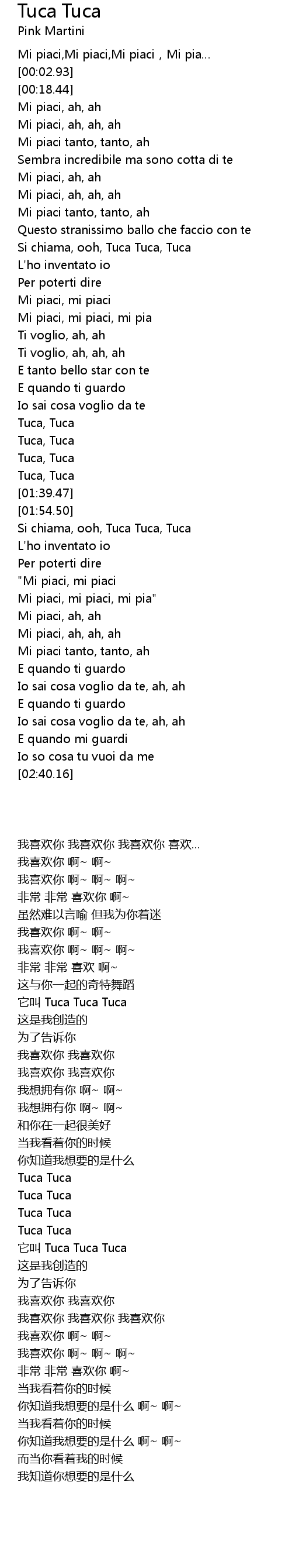 | [00:39.47] | Mi piaci, ah, ah, ah |