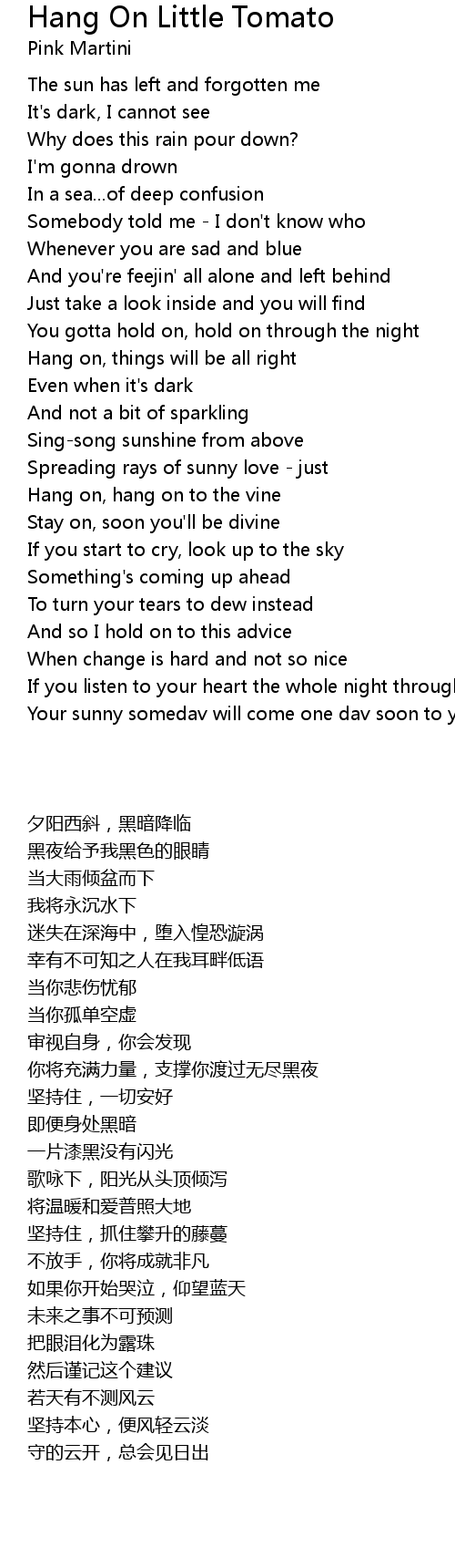 Hang on, things will be all right |