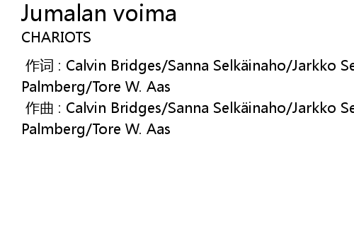 | [00:00.000] | 作曲 : Calvin Bridges/Sanna Selkäinaho/Jarkko Selkäinaho/Christa Palmberg/Tore W. Aas |