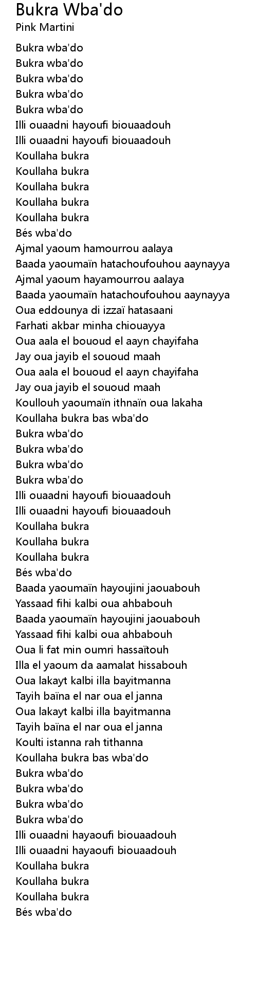 | Baada yaouma n hatachoufouhou aaynayya | |