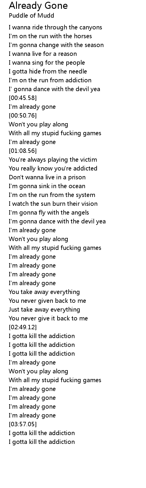 I'm already gone |