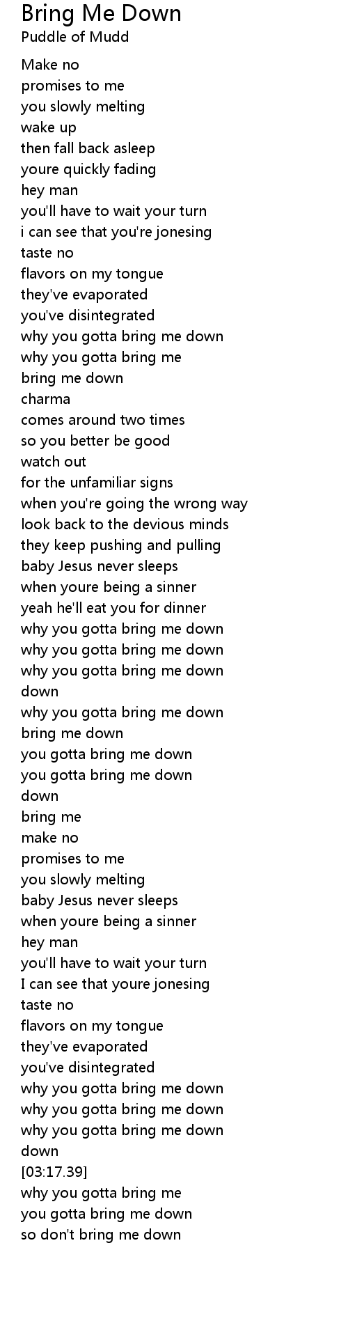 you gotta bring me down |